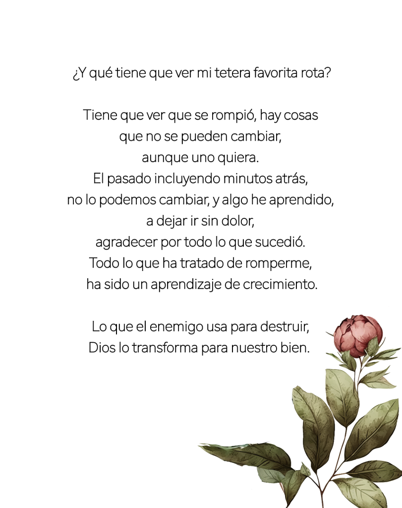 Esa tetera llegó cuando me sentí incomprendida, lastimada, pero a su vez llena de esperanza y de expectativa por lo que Dios haría en la nueva tierra donde Él me estaba sembrando.